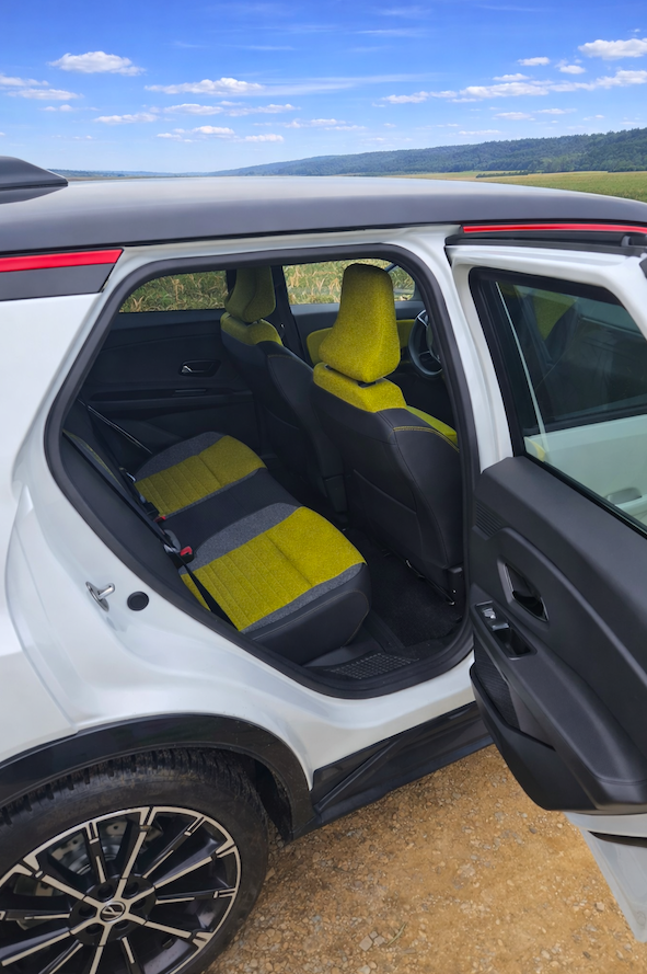 Z pohľadu rodiny je dôležité povedať si pravdu bez prikrášlenia. Renault 5 nie je malé auto, ktoré by zázračne ponúklo priestor ako o triedu väčší model. Vpredu sa sedí dobre a pohodlne, no vzadu už veľmi záleží na tom, kto sedí vpredu:) Ak majú predné sedadlá obsadené dlhonohí dospelí, vzadu už veľa rezervy nezostáva.