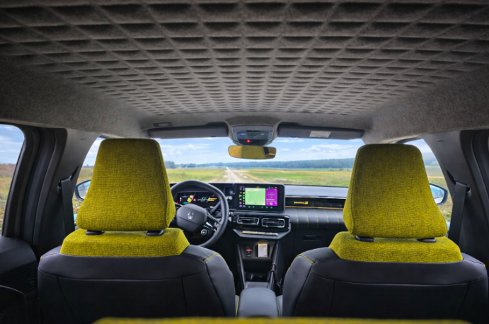 Aj vo vnútri Renault 5 ukazuje, že sa nechcel zaradiť medzi tuctové mestské autá. Veľmi pekne pôsobili žlto-sivé sedadlá, ktoré kabínu oživili a dali jej hravý charakter. Ešte viac ma zaujal sivý kockovaný tapacírung strešného interiéru, čo je detail, ktorý dnes človek v bežnom aute nevidí často.